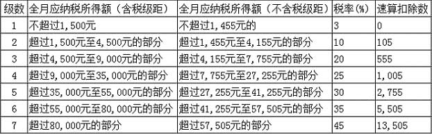 中国个税属于世界上少有的分类所得税制,具体分为11类,分别是工资、薪金所得,个体工商户的生产经营所得,利息、股息、红利所得,财产租赁所得,财产转让所得等。其中最为普通大众熟悉的,莫过于工资薪金所得。目前工资薪金在3500元免征额后,采取7级累进税率(3%~45%)征收: